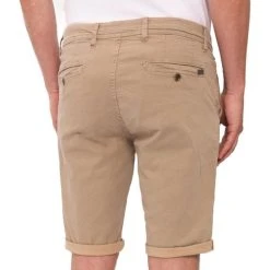 Craquez pour ce bermuda homme de la marque Paname Brothers ! Couleur : Beige Coupe altique Poches sur les cuisses Liens de serrage sur le bas du short Passants pour ceinture Braguette boutonnée Composition : 98% coton, 2% élasthanne