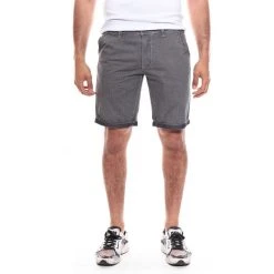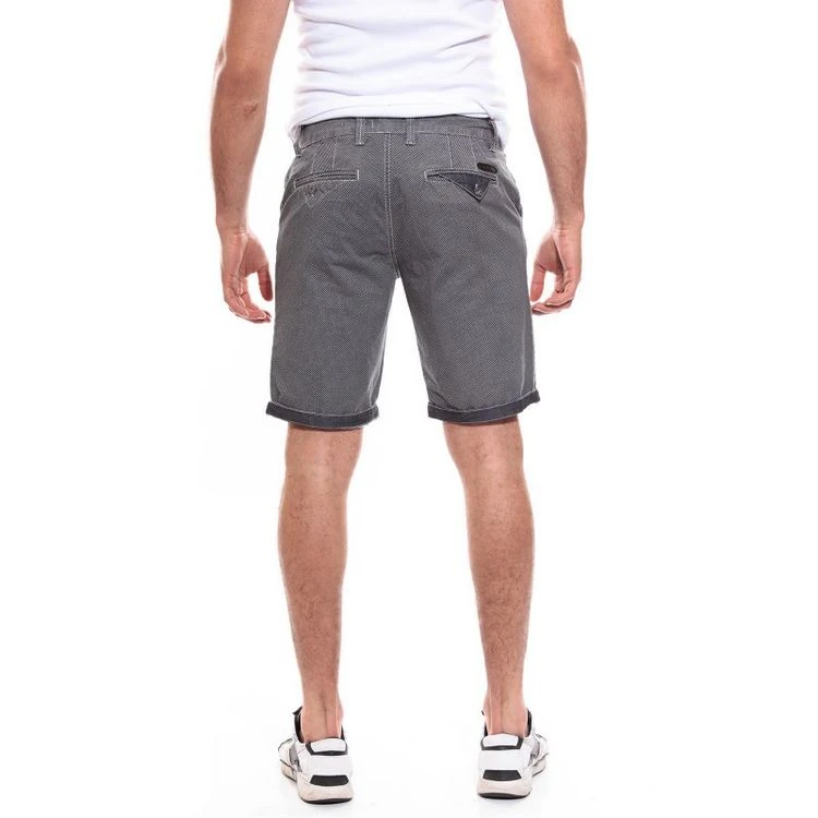 Bermuda chino imprimé avec motifs petits carreaux esprit pied de poule. Fermeture par zip et bouton à la taille. Ceinture à passants. 2 poches cotés et 1 poche ticket. 2 poches passepoilées à fermeture boutonnée au dos. 100% coton. Lavage en machine à 30°. Conseil d’achat: prendre une taille au dessus de votre taille habituelle.